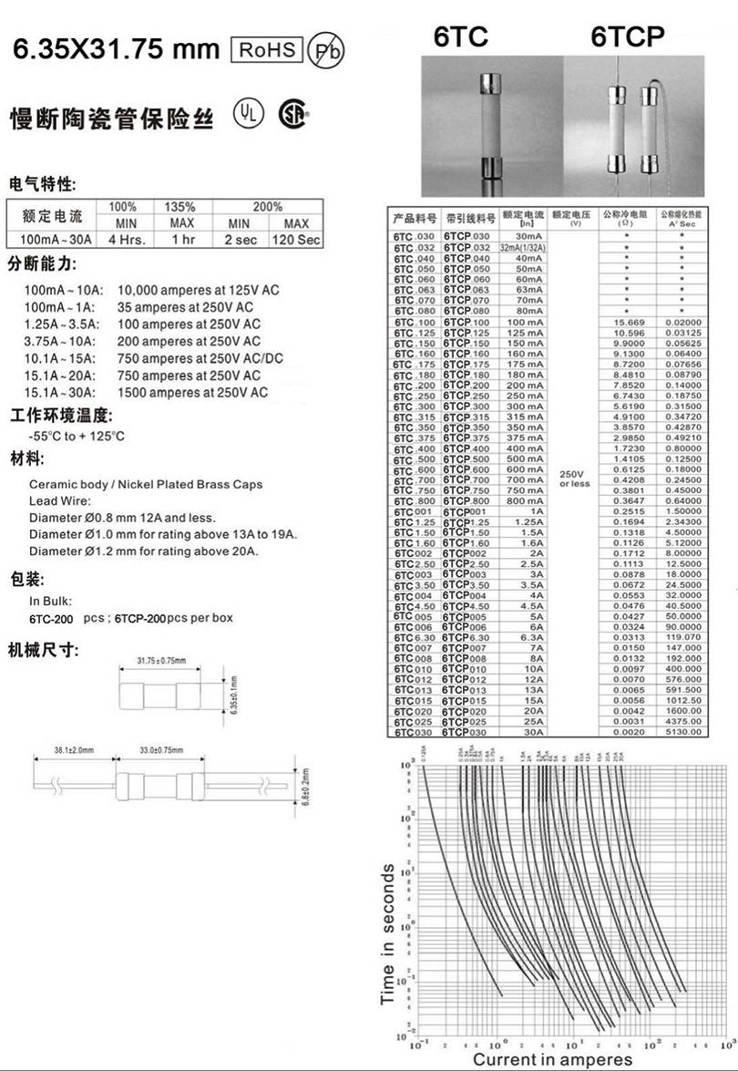 6.35X31.75陶瓷慢斷保險絲