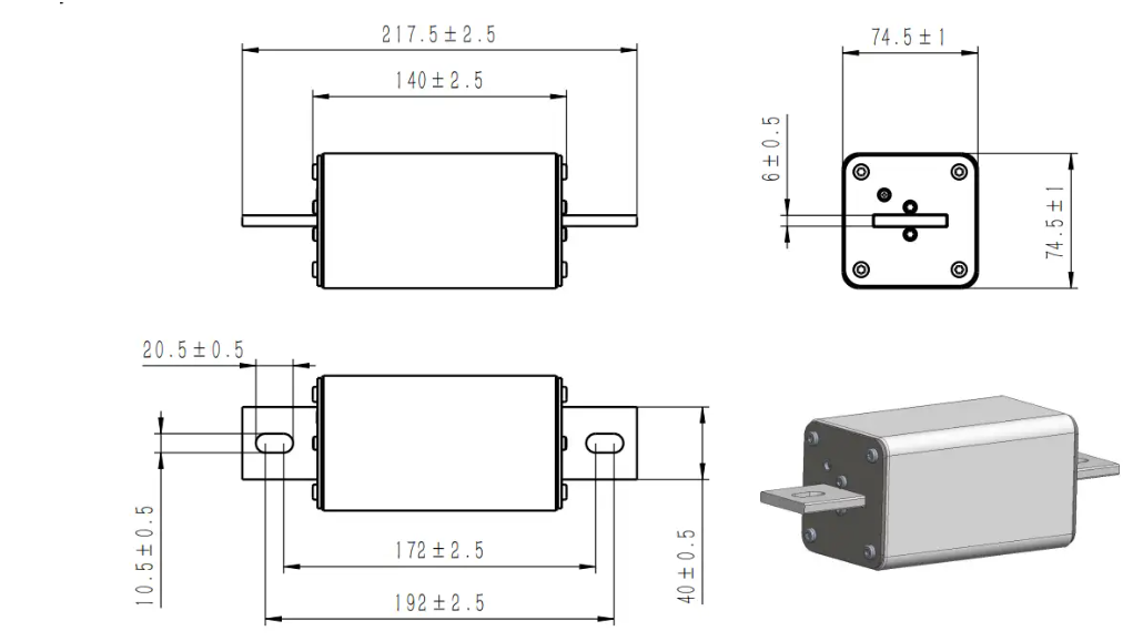 | Connect | Part No. | Fuse Amps | Average @250KA/1500Vdc | Power Loss (W) | Approvals | |||